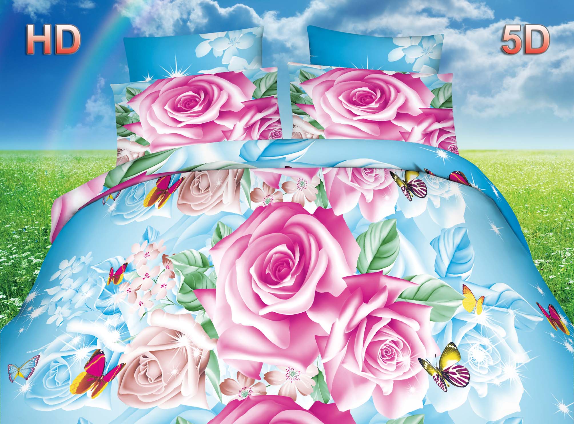 Комплекты постельного белья сшиты из современной ткани микросатин (100% полиэстер), которая обладает высокой степенью прочности, мягкостью и яркими дизайнами с эффектом 3D и 5D.