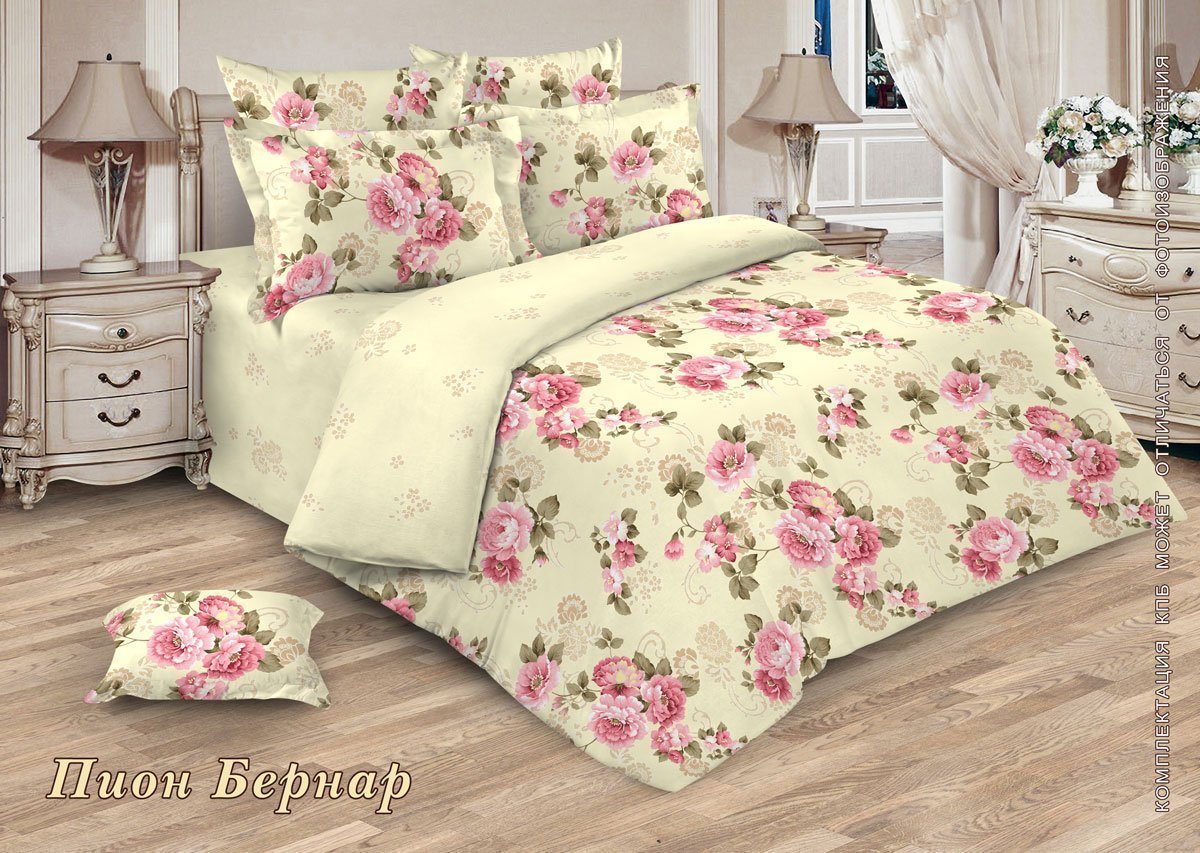 - Постельное белье из перкали "Ренессанс" 1,5 сп. (диз.: Пион Бернар)