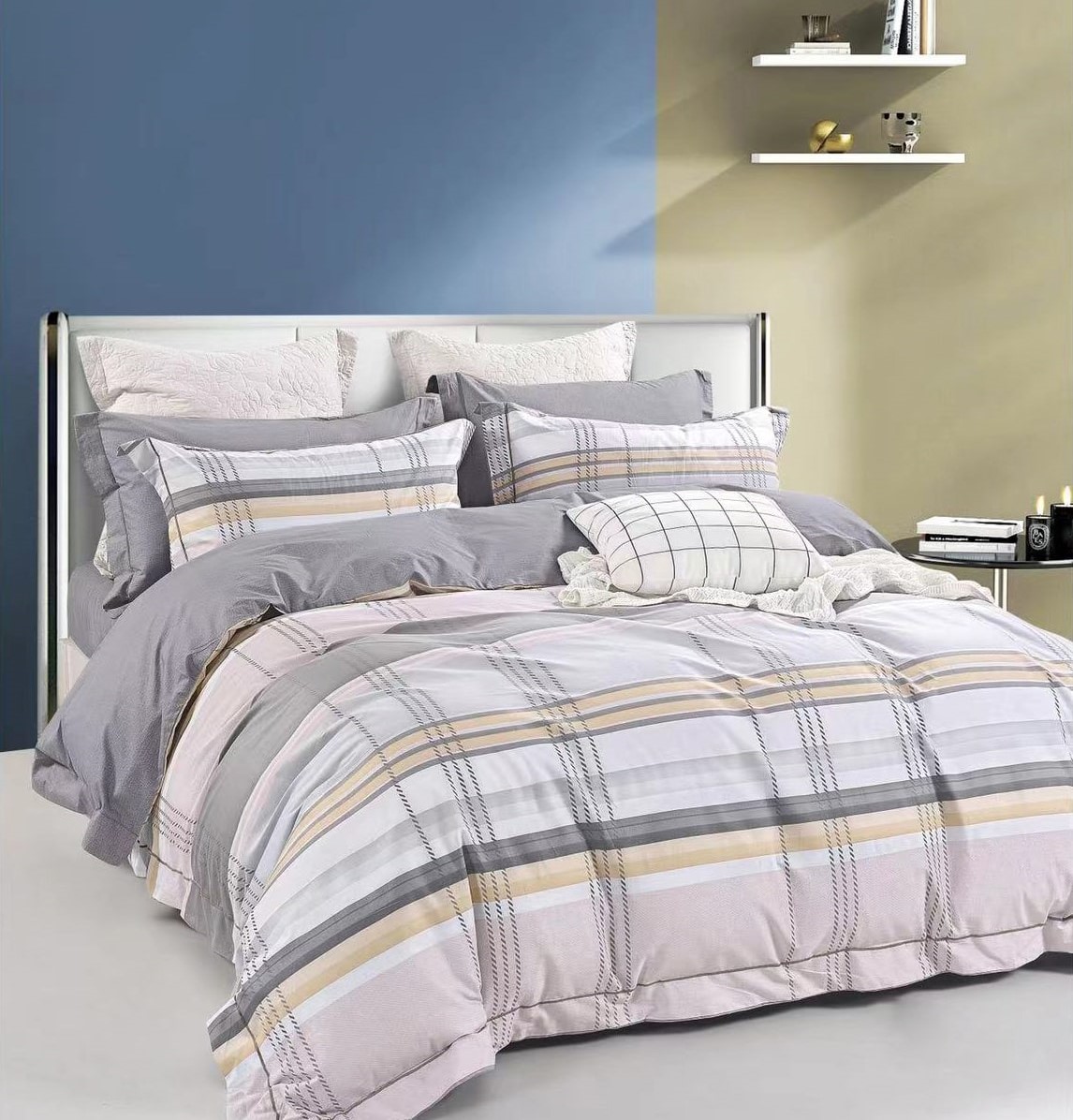 2,0 спальный с евро простыней - пододеяльник 175*215 см, простынь 215*240 см, на резинке, борт 20 см, спальное место 180*200 см, наволочка 70*70 см - 2 шт;