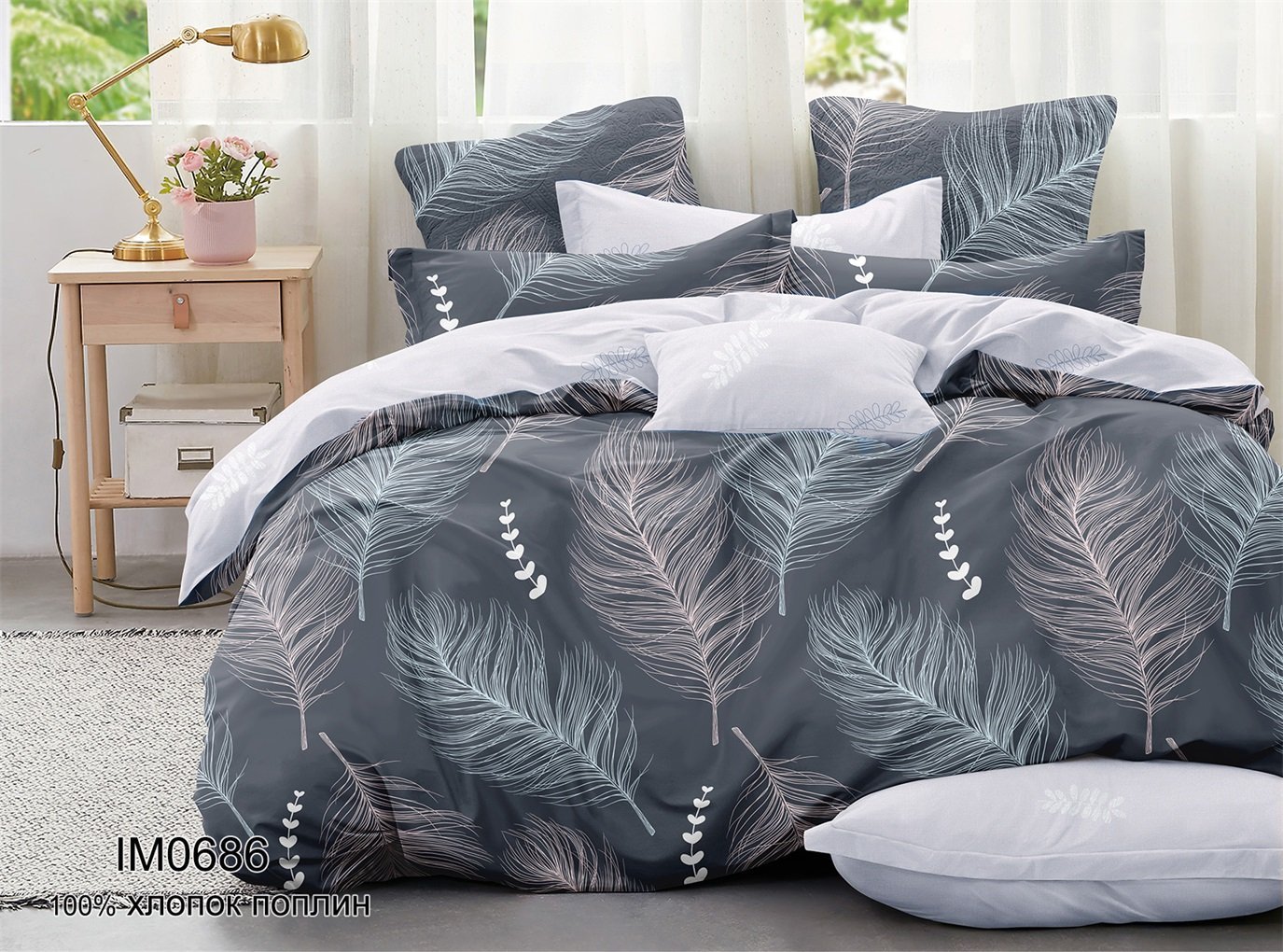 Благодаря свойствам поплина, комплект постельного белья хорошо сохраняет форму и цвет, мягкий и приятный на ощупь, отвечает всем европейским экологическим стандартам и не требует специального ухода, а просто стирается в стиральной машине при температуре 30 градусов.