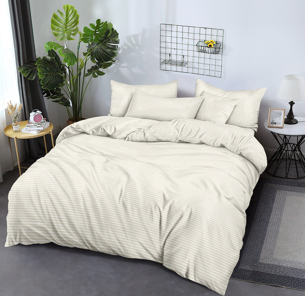 Постельное белье из страйп-сатина "Мирослава" 2,0 сп. с Евро (нав. 50*70 и 70*70 диз.: Топленое молоко)