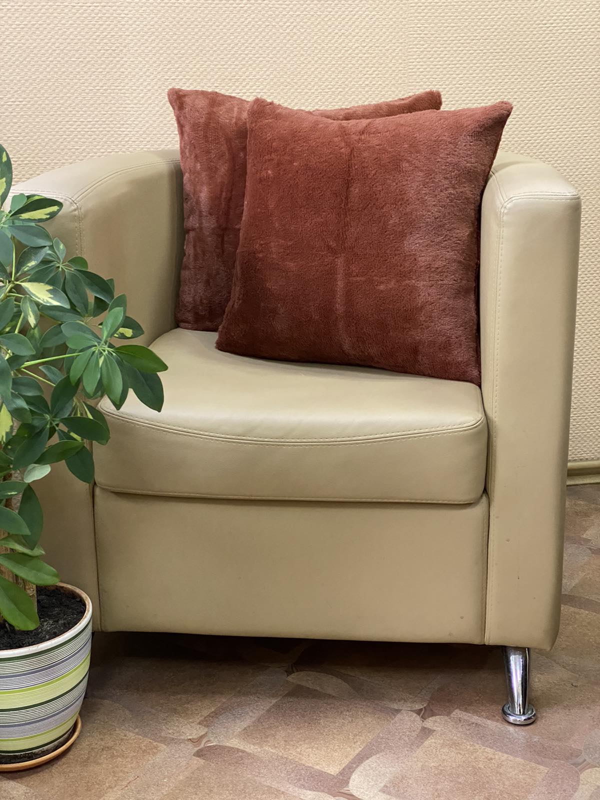 Изделия выполнены из микрофибры с коротким ворсом ( 0,7-1 см). Размер 50/50 см, на молнии.
