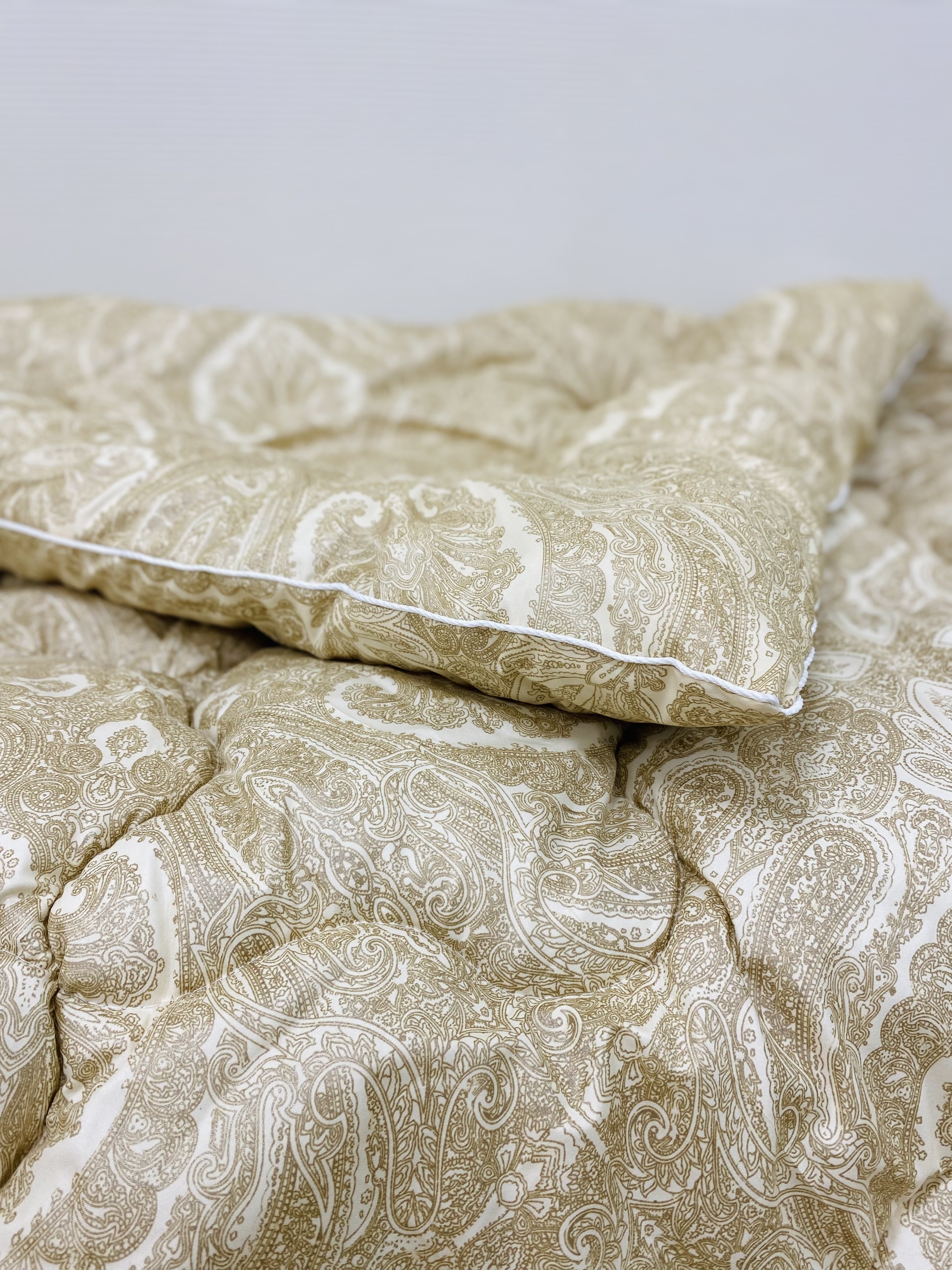В этой серии одеял мы используем прочесанный наполнитель "лен" ( состав: 20% льняные волокна; 80% полиэфирные волокна). Вес наполнителя 1,5 сп -1 800 гр,, 2,0 сп – 2 000 гр., евро – 2 200 гр.