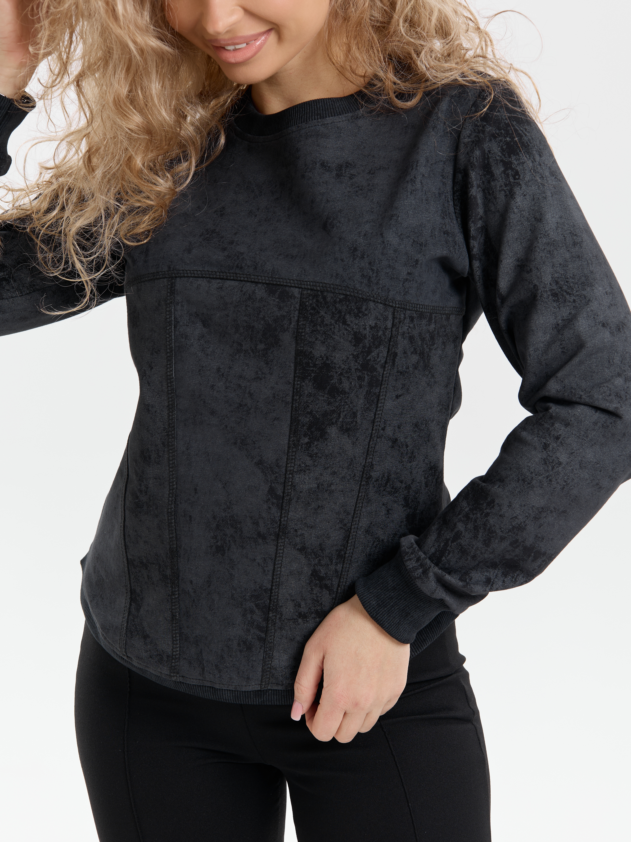 Уникальная особенность этой модели - декоративная строчка в виде имитации корсета. Модель выглядит оригинально и изысканно. Необычный дизайн выделит вас из толпы. Качественная и приятная ткань обеспечивает комфорт в любое время года. Кофта с длинным рукавом подчеркнет вашу фигуру, а трендовый "варёный" цвет ткани добавит изюминку в ваш образ.