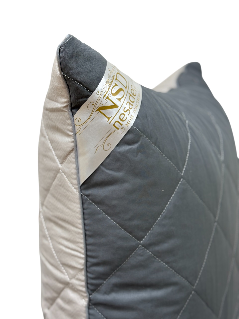 Стеганный чехол на молнии сшит из белоснежной микрофибры ( плотность 80 г/кв.м, полиэстер 100%), отделан атласным кантом золотисто-бежевого цвета. Такое сочетание материалов придает благородный вид изделию.