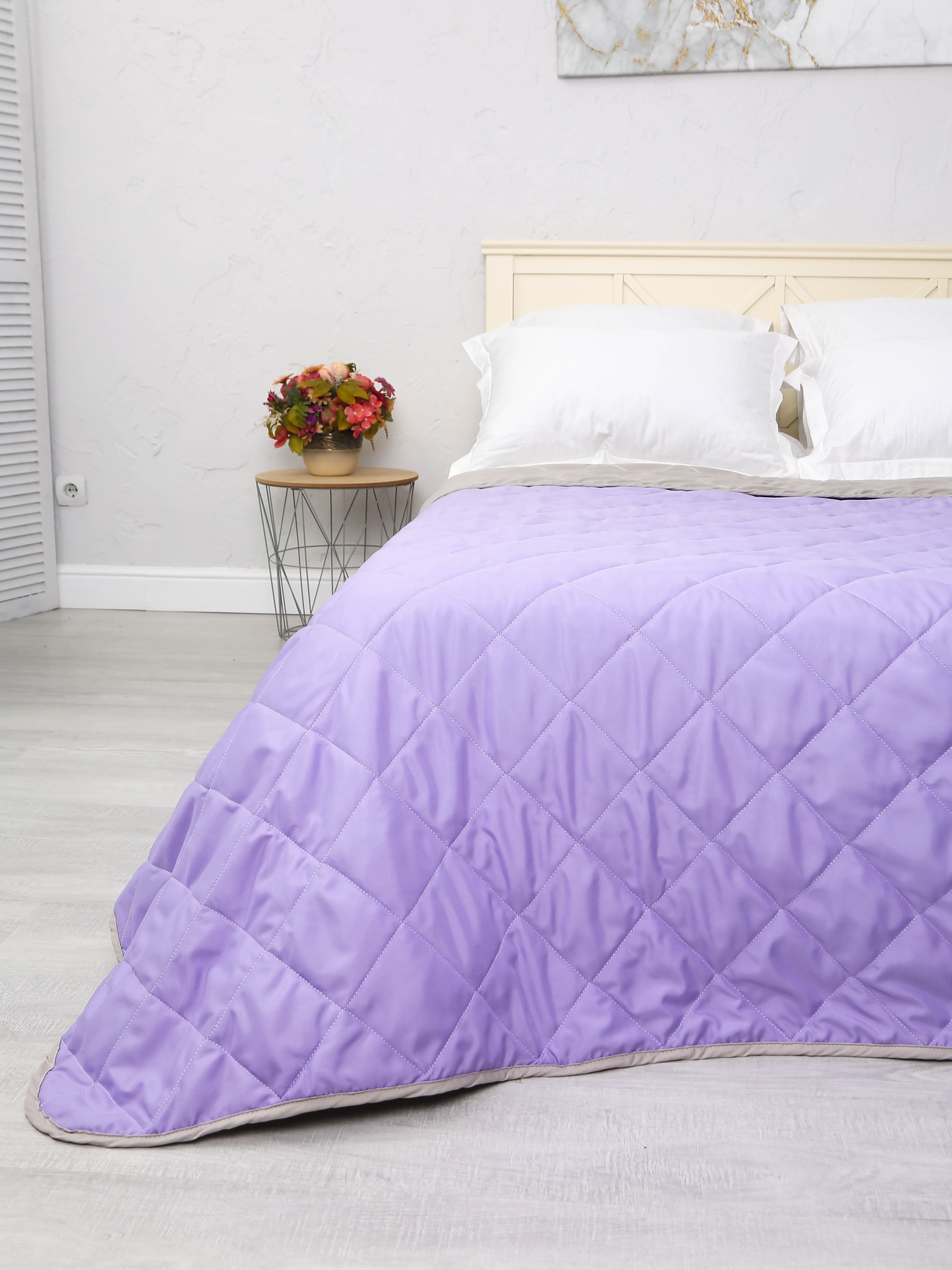 Покрывало "Фиона" стеганное (ромб, 80г) 200*220 (диз.: 3 фиалка-серый )